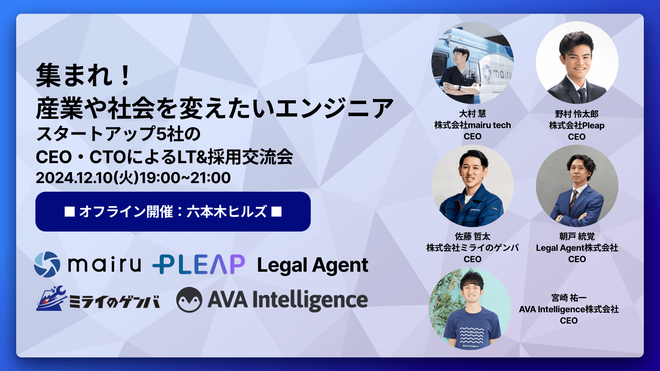 増枠!産業や社会を変えたいエンジニア集まれ!スタートアップ5社のCEO・CTOによるLT&採用交流会